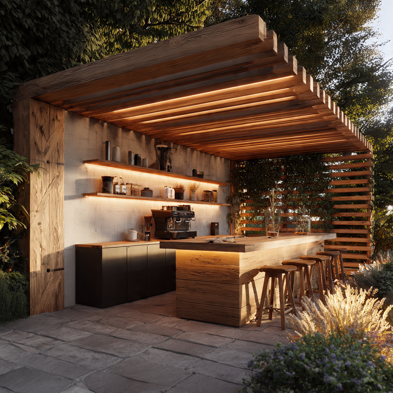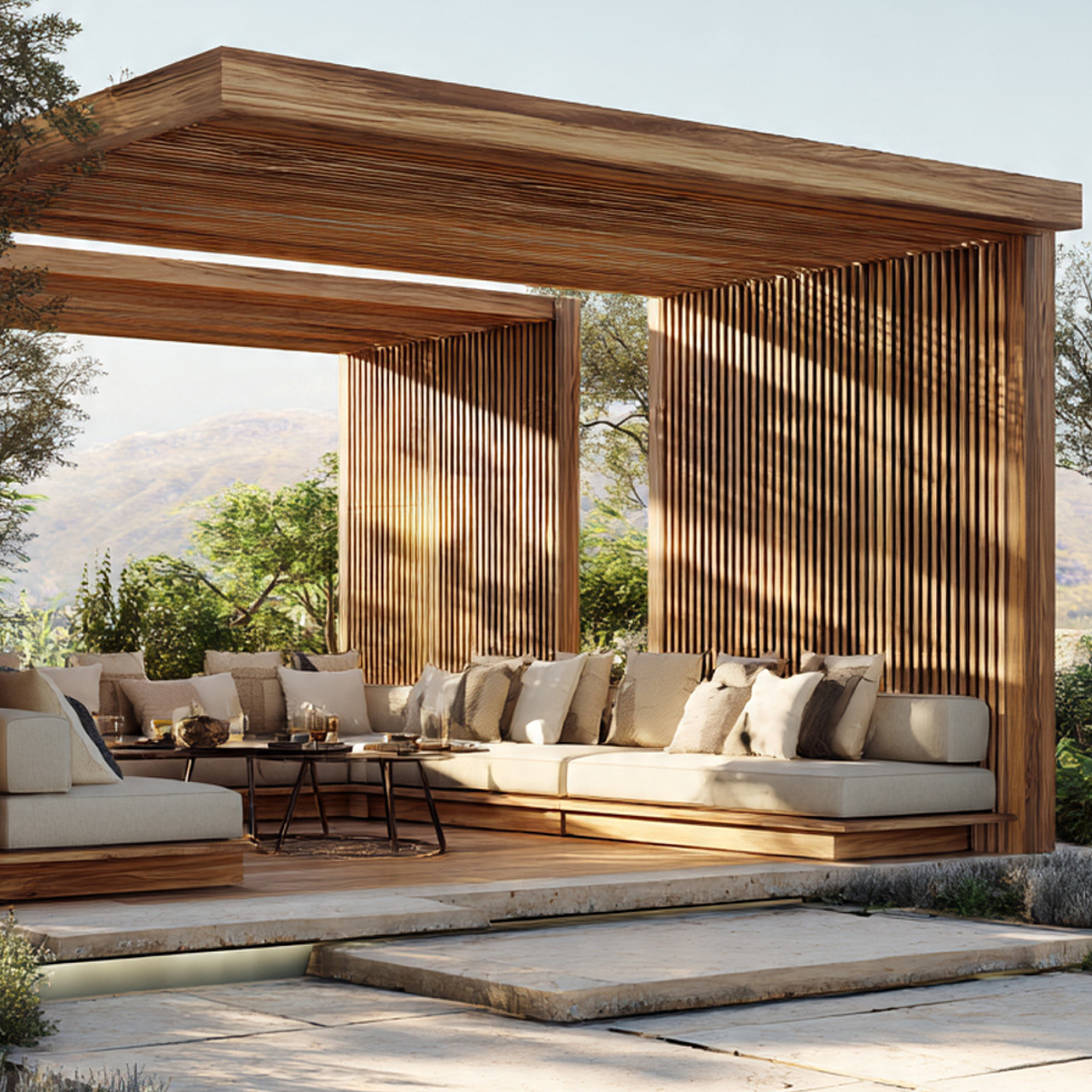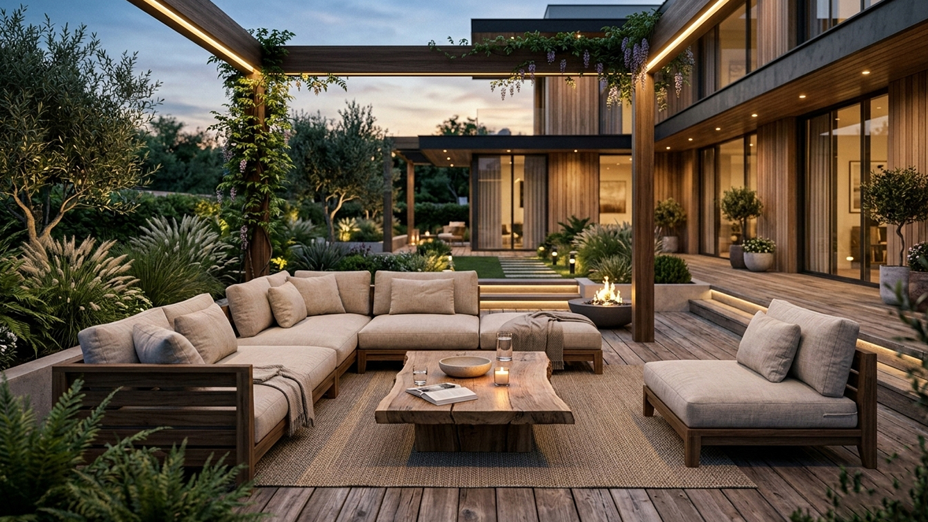 Discover the perfect blend of nature and art with our outdoor landscape designs, crafted from two exceptional types of wood: vintage old oak and acacia tree wood. Our eco-friendly materials resist sun and water, ensuring durability and comfort in any environment.